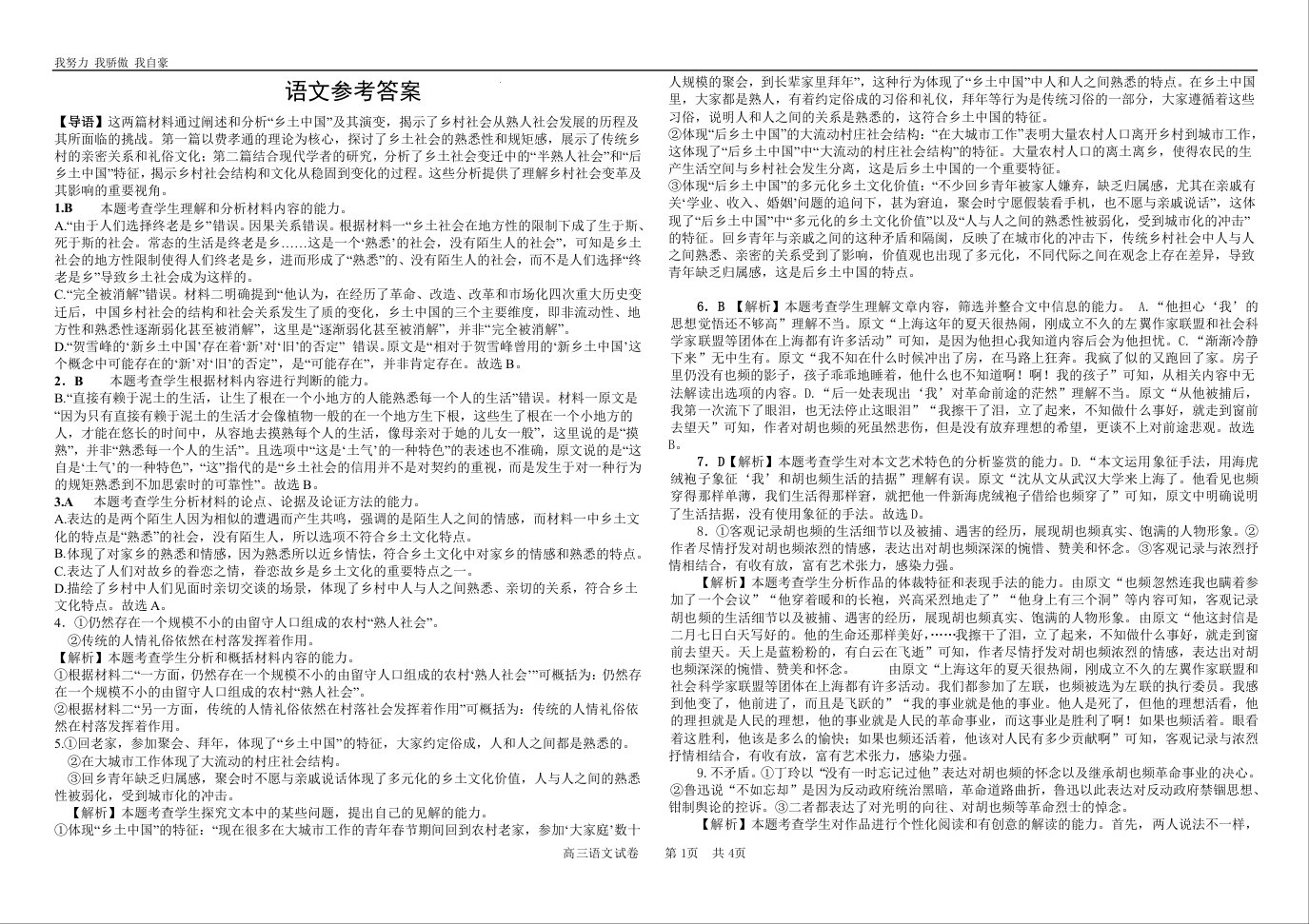 河南省驻马店市重点高中2025届高三下期第三次考试 语文答案.docx