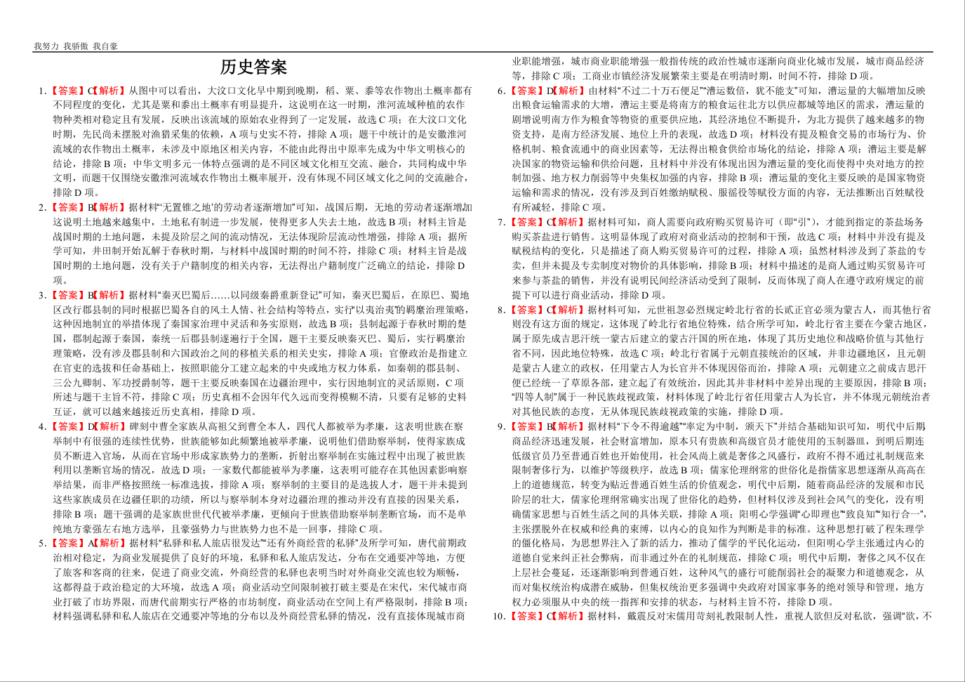 河南省驻马店市重点高中2025届高三下期第三次考试 历史答案.docx
