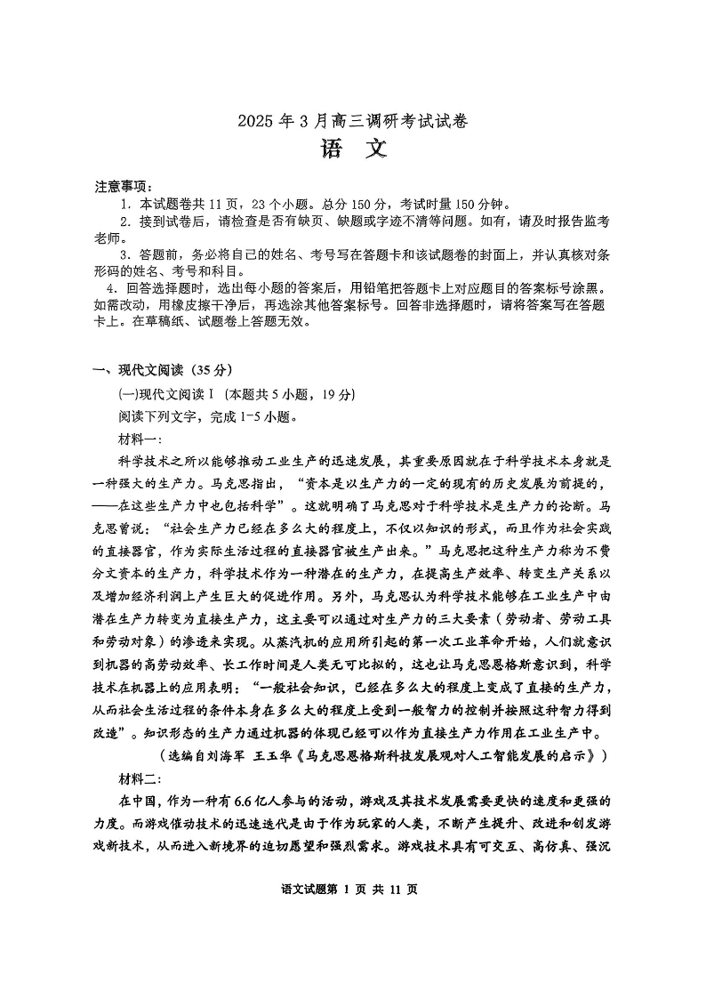 湖南省长、望、浏、宁四县市2025届高三三月调研考试 语文(含答案).pdf