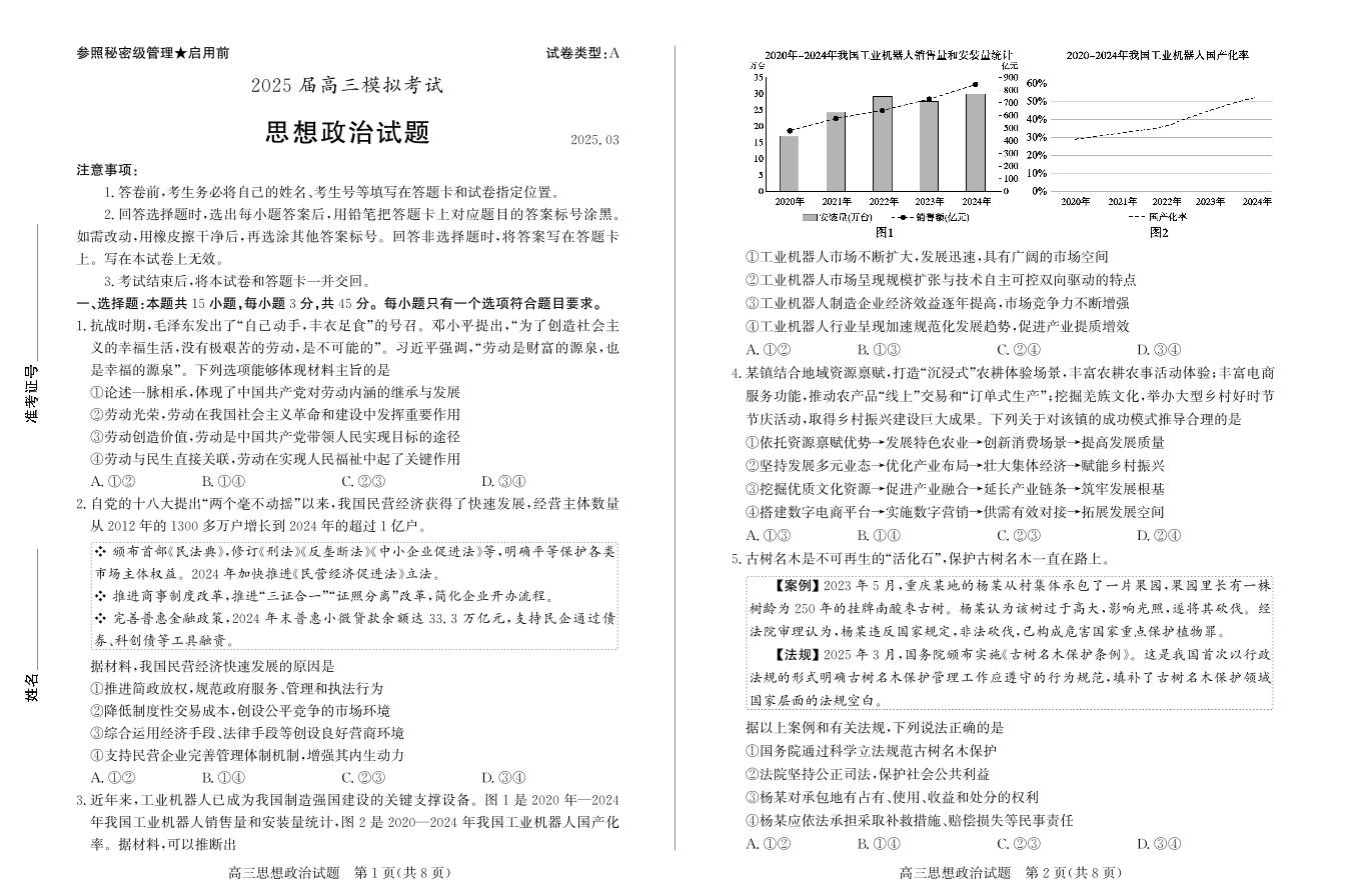 山东省枣庄市2025届高三模拟考试(枣庄二调)政治.pdf