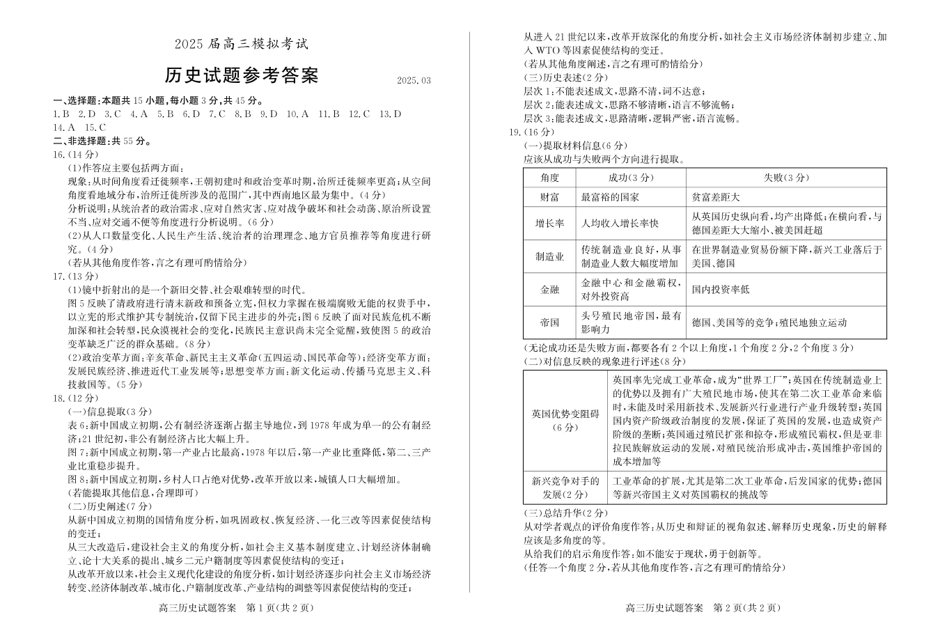 山东省枣庄市2025届高三模拟考试(枣庄二调)历史答案.pdf