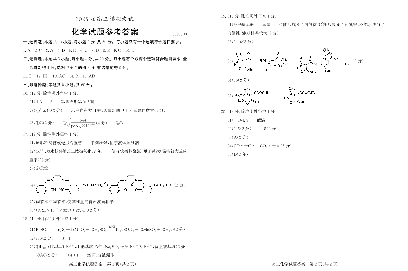 山东省枣庄市2025届高三模拟考试(枣庄二调)化学答案.pdf