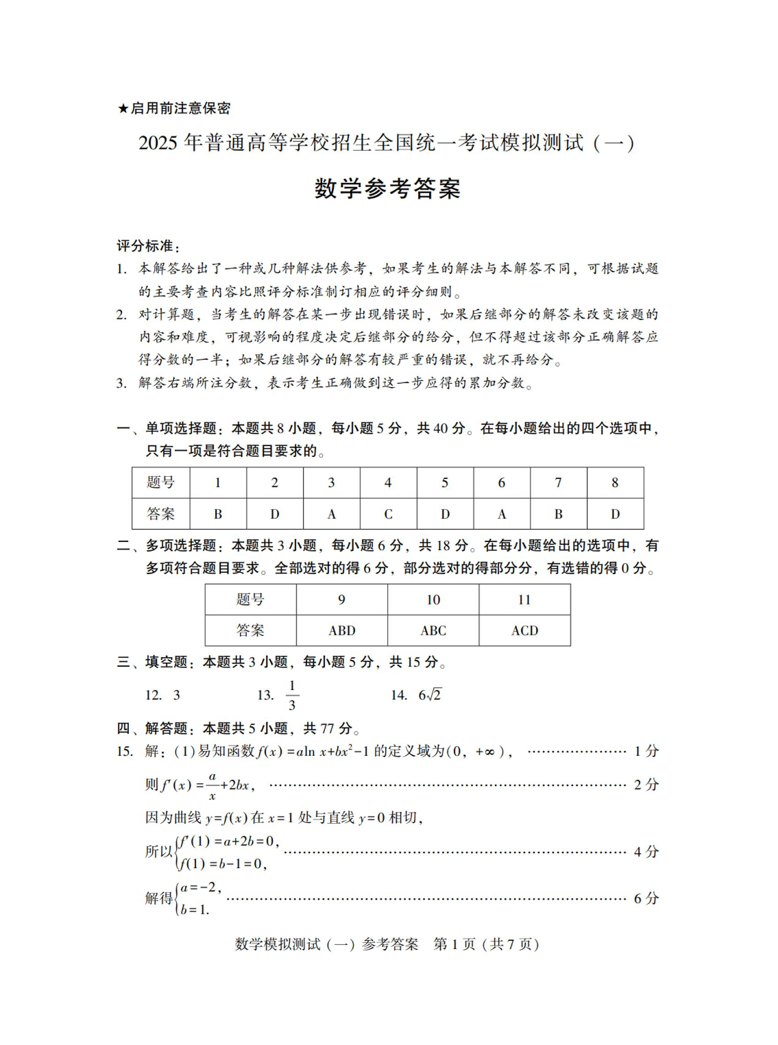 广东省2025届高三3月第一次调研考试 数学答案.pdf