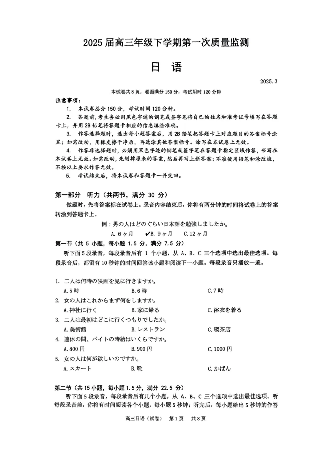2025年广州市普通高中毕业班综合测试(一)日语.pdf