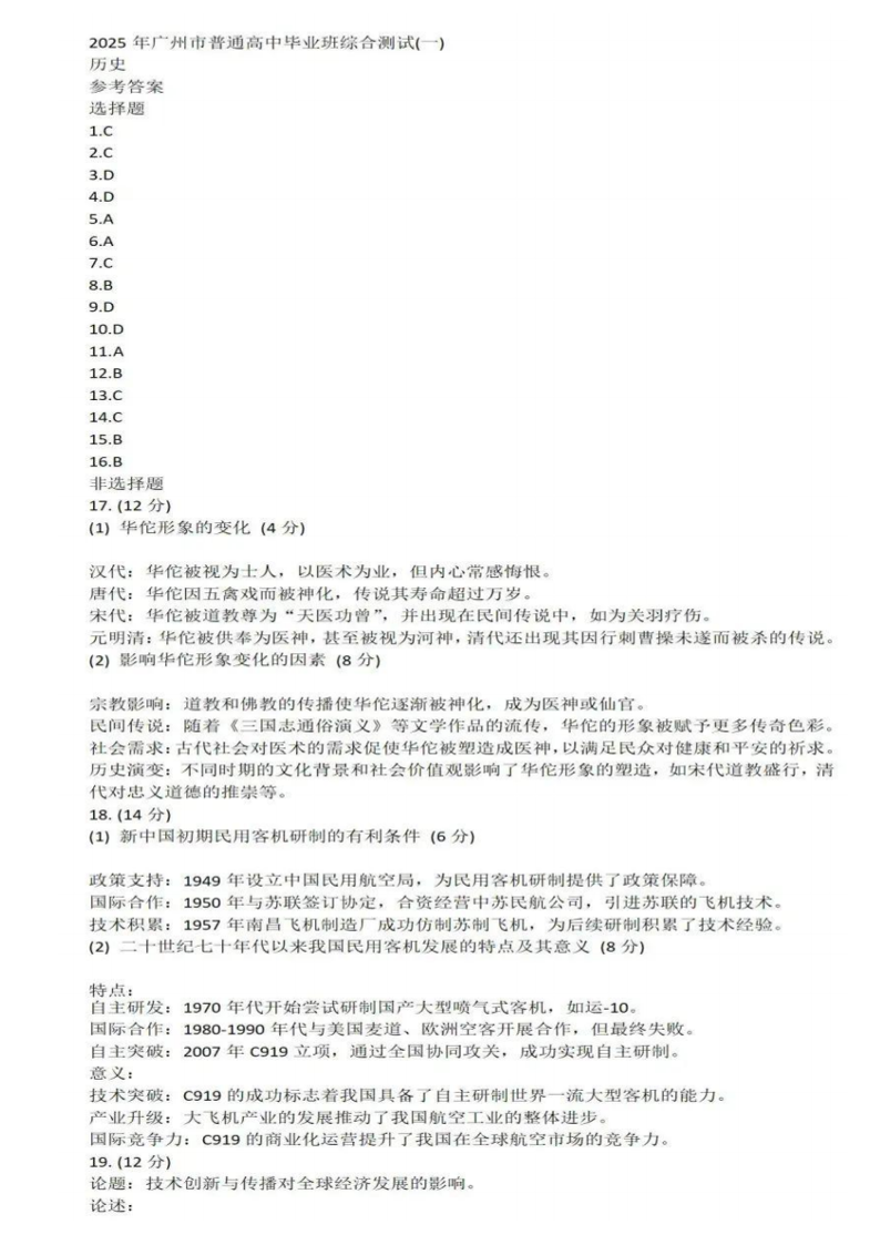 2025年广州市普通高中毕业班综合测试(一)历史答案.pdf