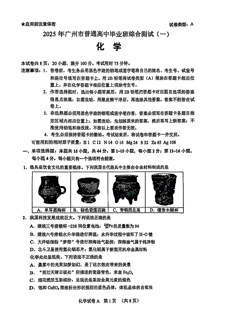 2025年广州市普通高中毕业班综合测试(一)化学.pdf