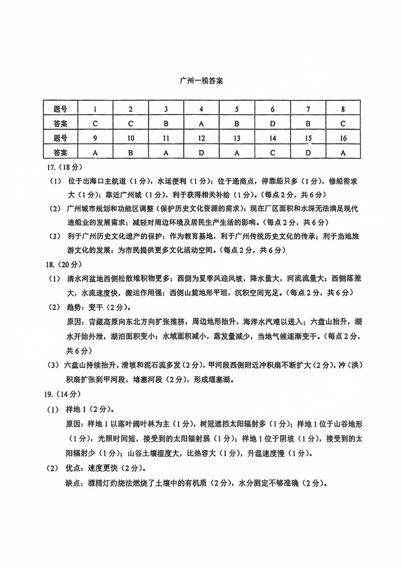 2025年广州市普通高中毕业班综合测试(一)地理答案.pdf