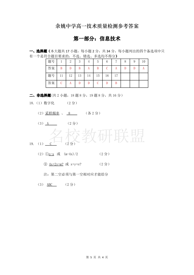 余姚中学2024学年第二学期质量检测 高一信息技术部分答案.pdf