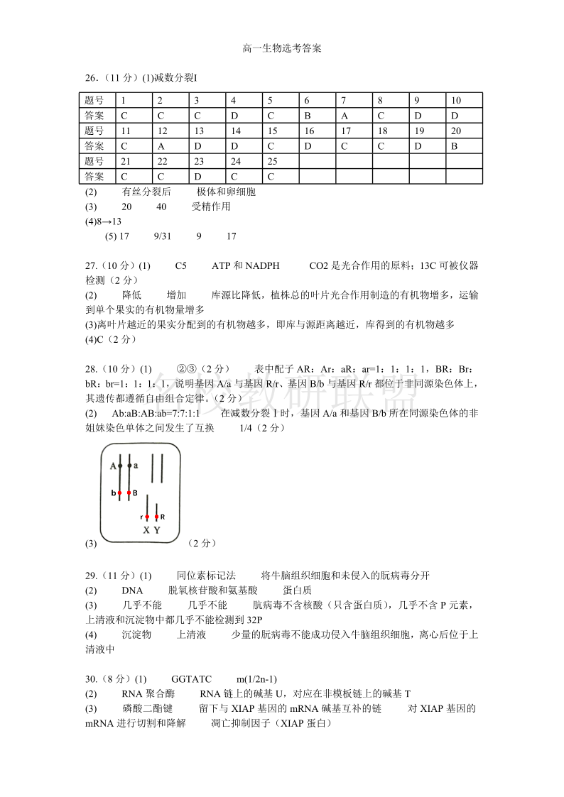 余姚中学2024学年第二学期质量检测 高一生物答案.pdf