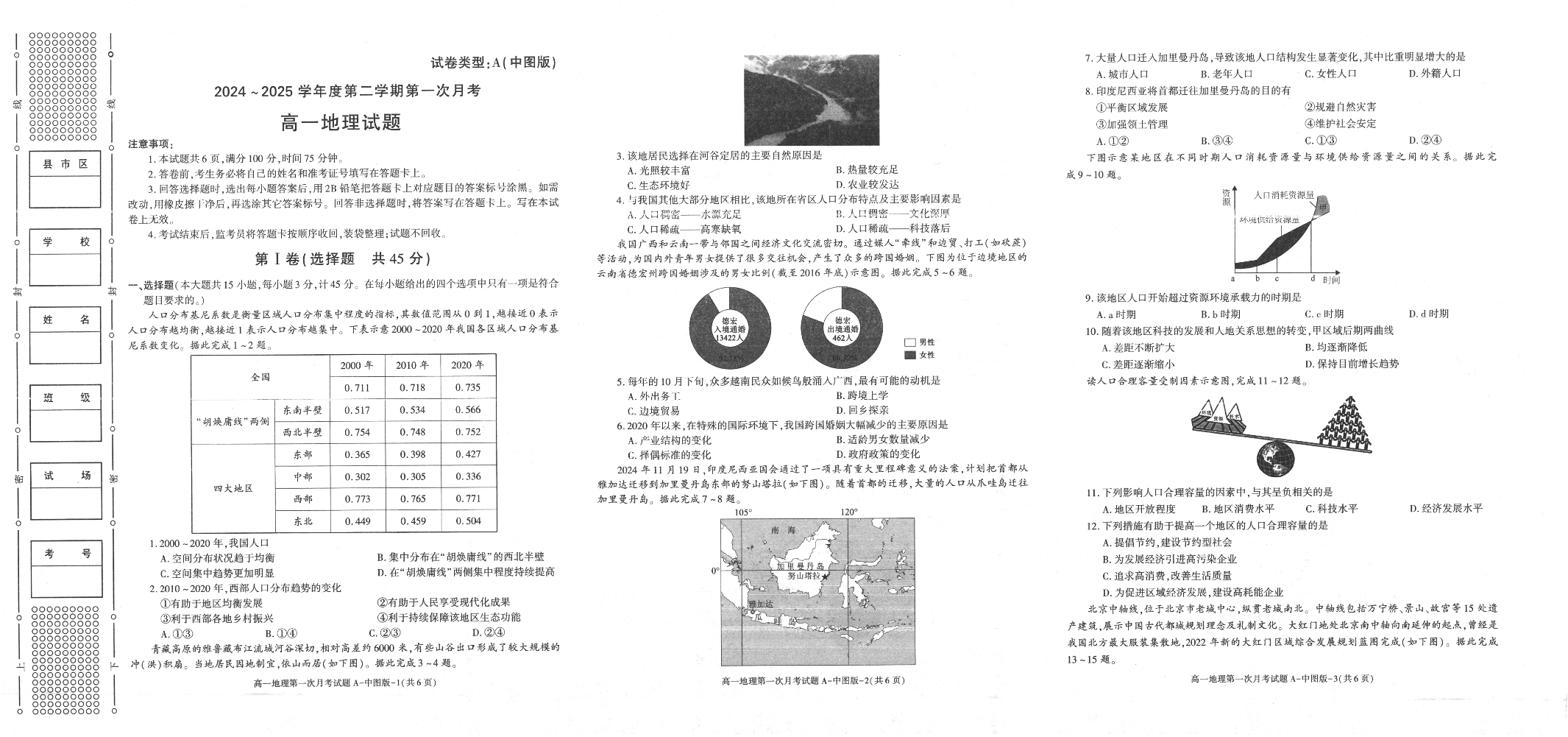 陕西省2024-2025学年高一下学期3月第一次联考 地理(含答案).pdf