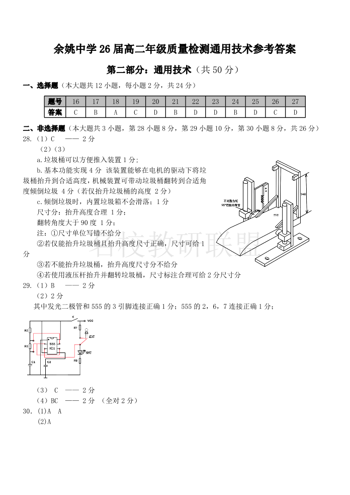 余姚中学2024学年第二学期质量检测 高二通用技术答案.pdf