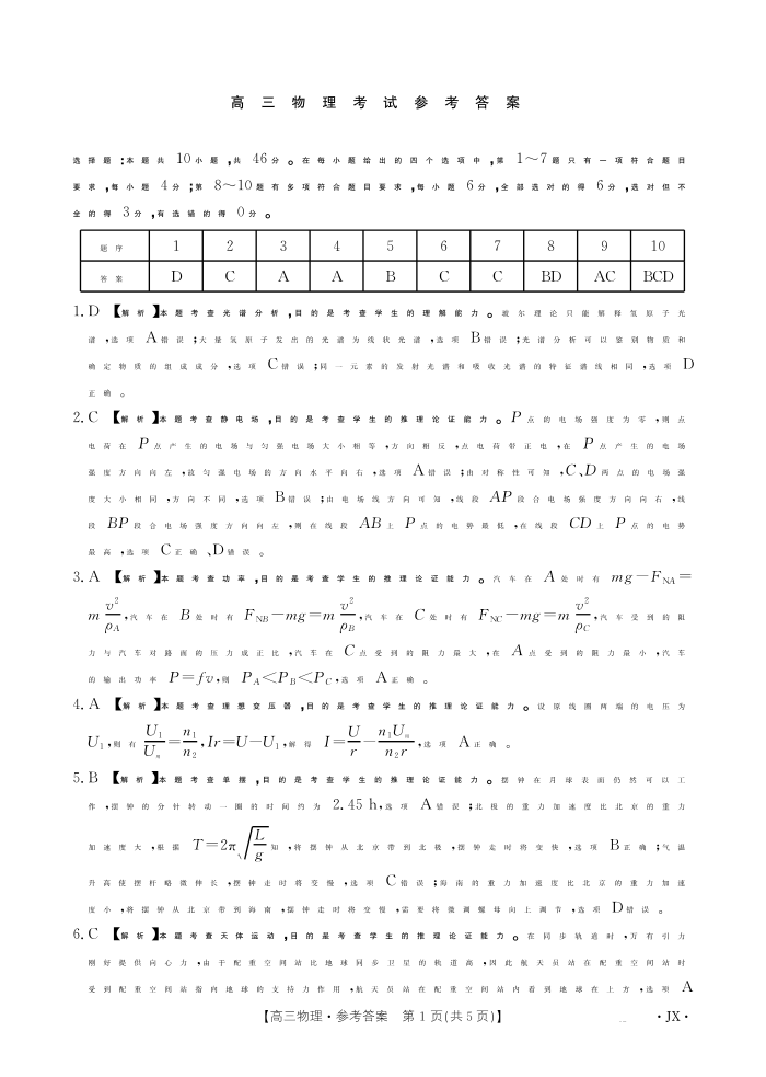 江西省2025届高三下学期3月百万大联考 物理答案.pdf