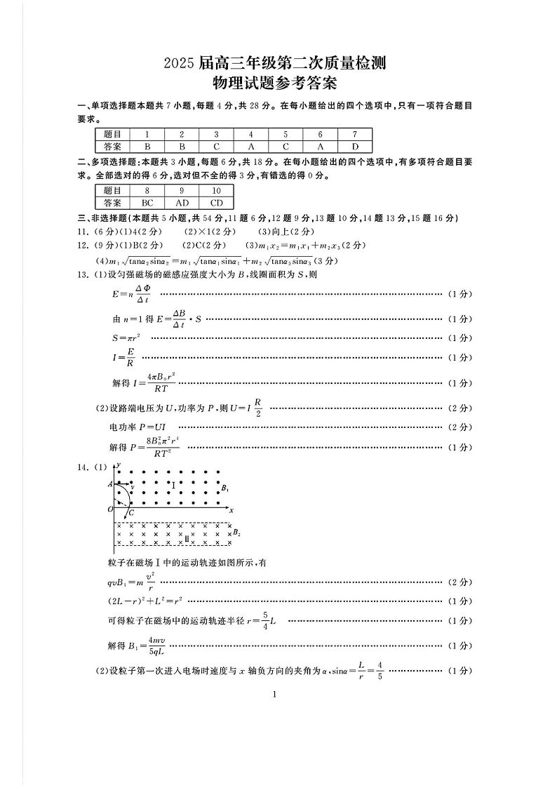 开封、周口、商丘市2025届高三年级第二次质量检测 物理答案.pdf