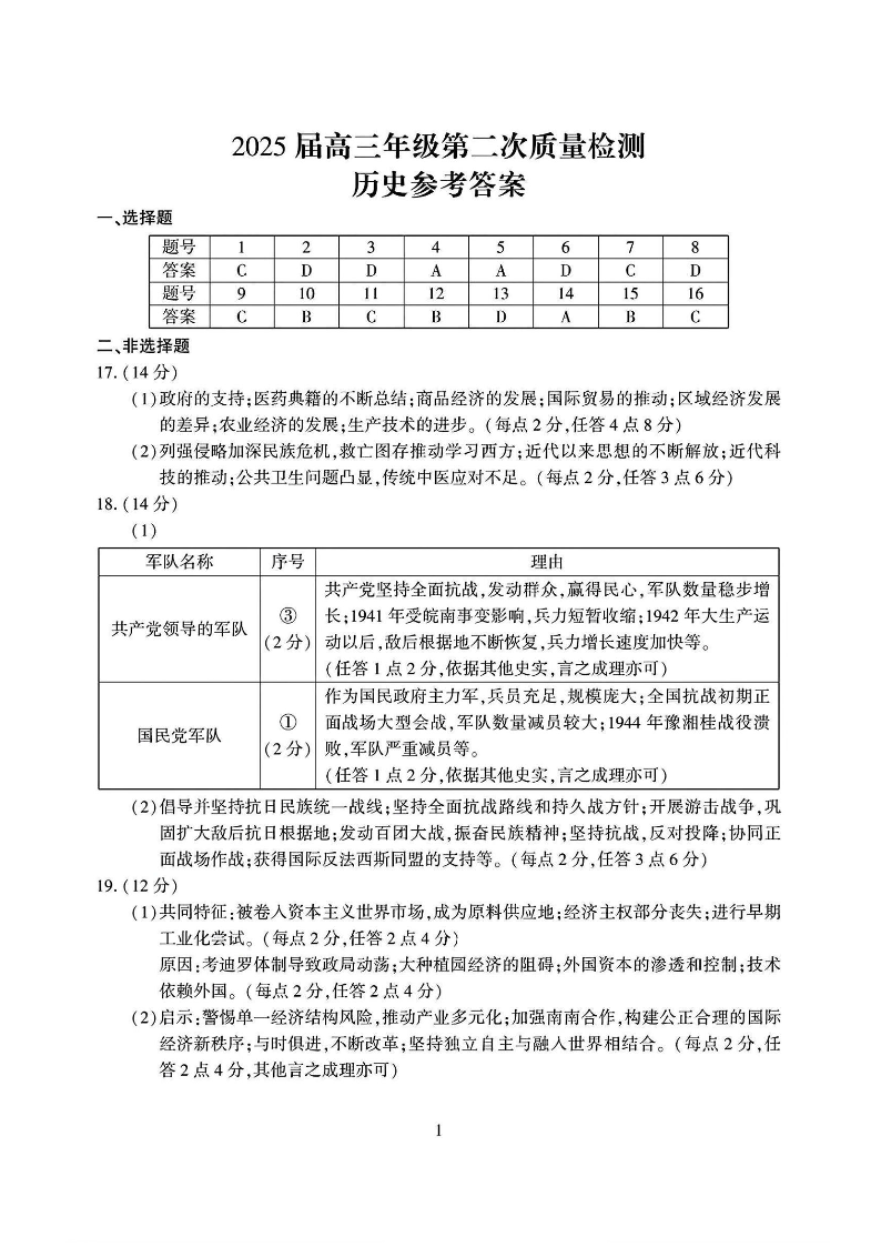 开封、周口、商丘市2025届高三年级第二次质量检测 历史答案.pdf