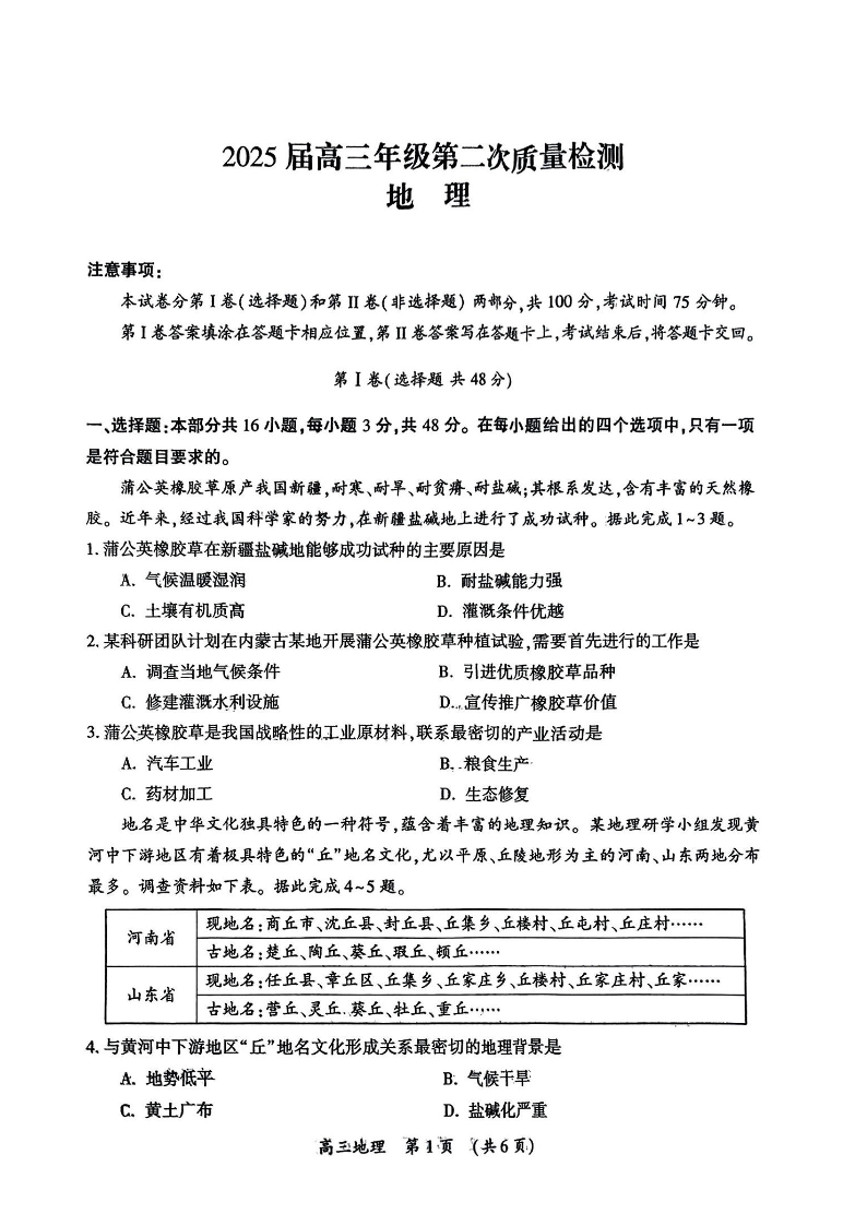 开封、周口、商丘市2025届高三年级第二次质量检测 地理.pdf