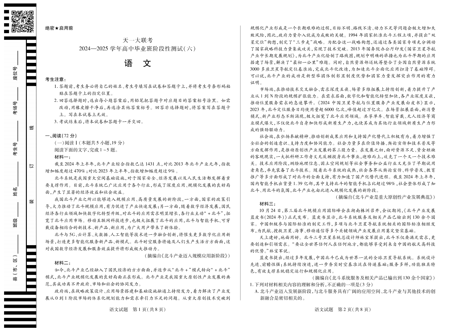 河南省天一大联考2024-2025学年高中毕业班阶段性测试(六)语文.pdf