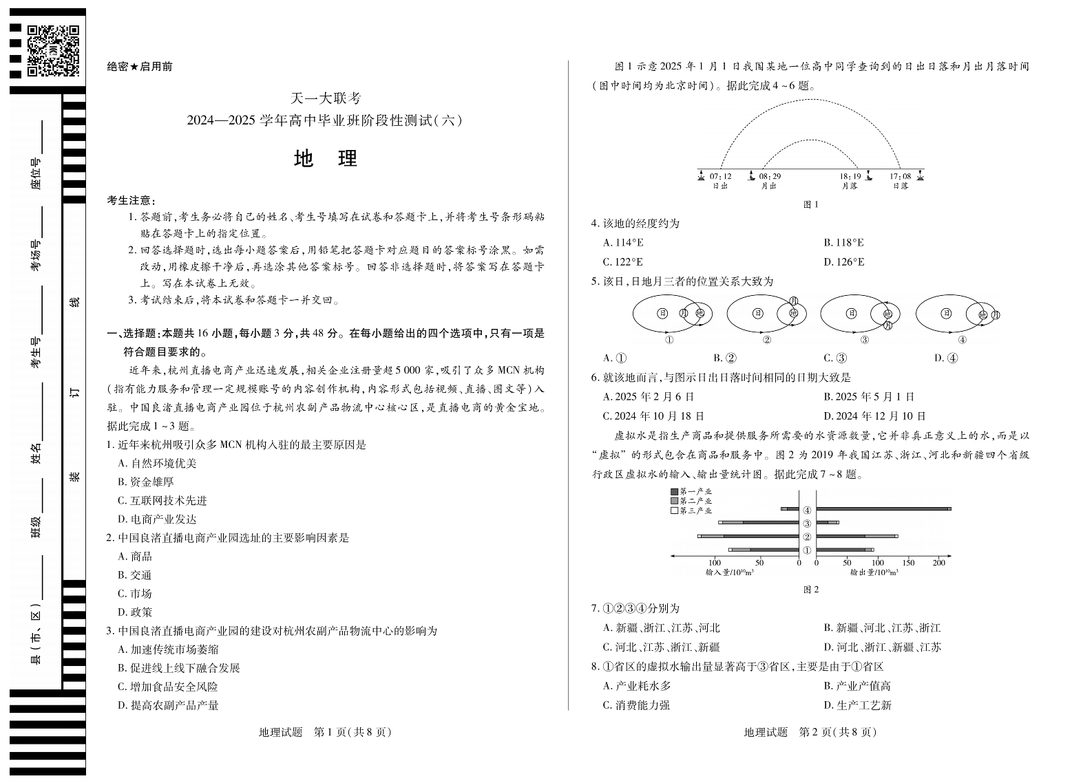 河南省天一大联考2024-2025学年高中毕业班阶段性测试(六)地理.pdf