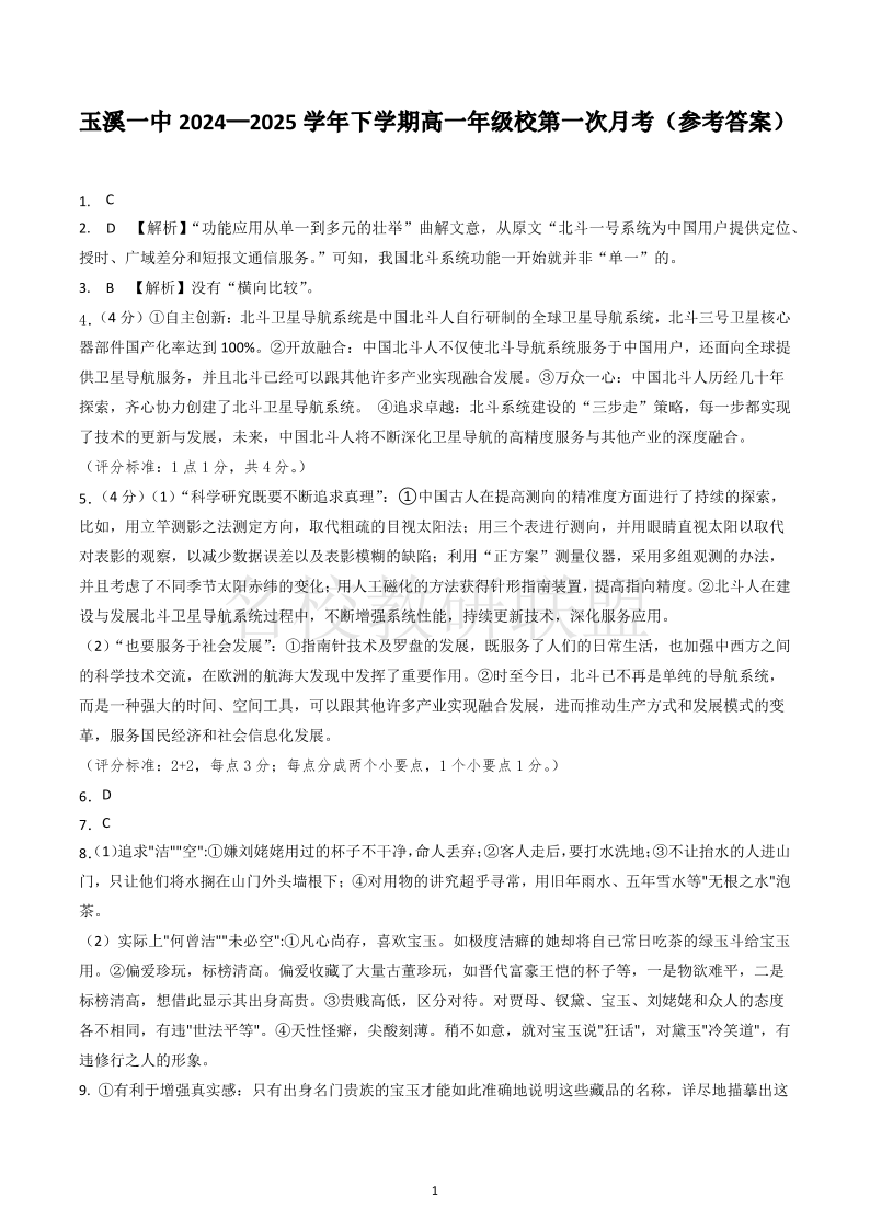 云南省玉溪市一中2024-2025学年高一下学期3月月考 语文答案.pdf