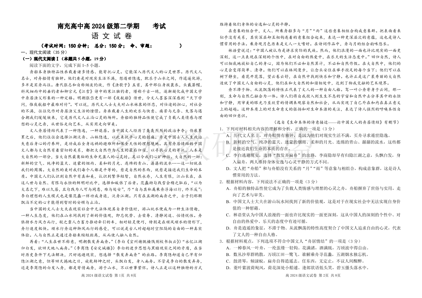 四川省南充市高级中学2024-2025学年高一3月月考 语文.pdf