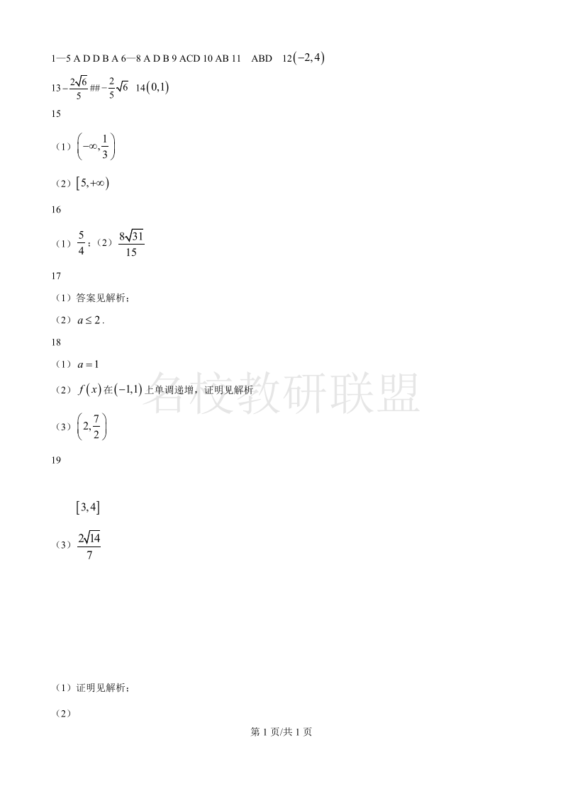 四川省南充市高级中学2024-2025学年高一3月月考 数学答案.pdf