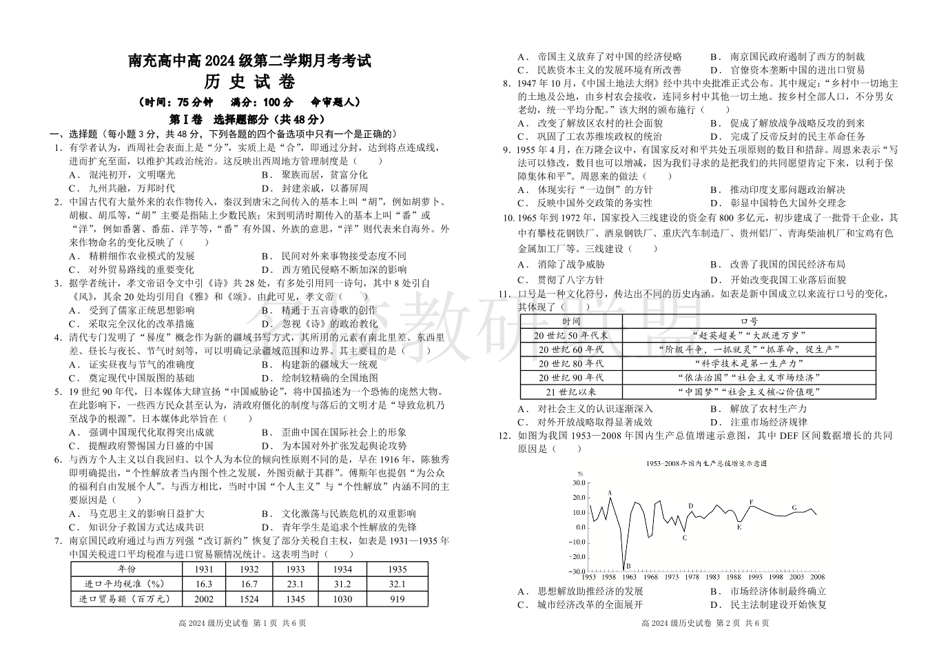 四川省南充市高级中学2024-2025学年高一3月月考 历史.pdf