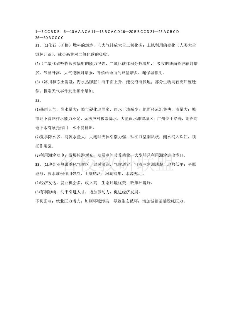四川省南充市高级中学2024-2025学年高一3月月考 地理答案.pdf
