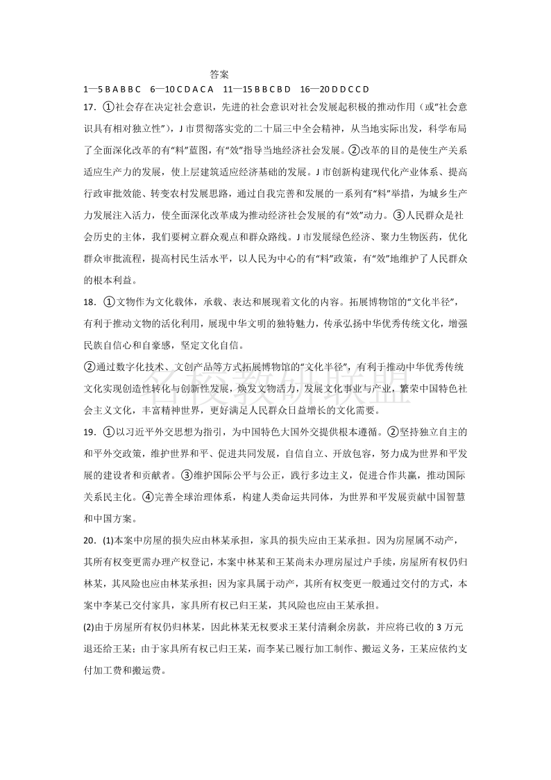 四川省南充市高级中学2024-2025学年高二3月月考 政治答案.pdf