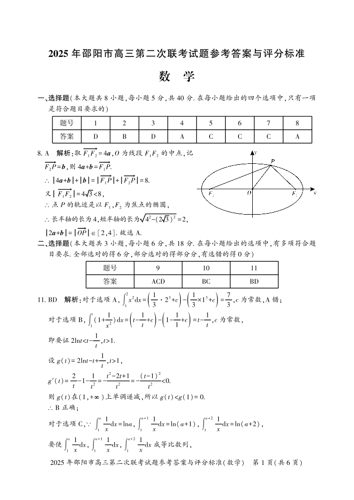 2025年邵阳市高三第二次联考 数学答案.pdf