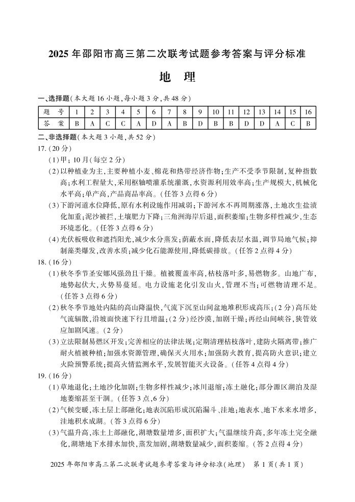 2025年邵阳市高三第二次联考 地理答案.pdf