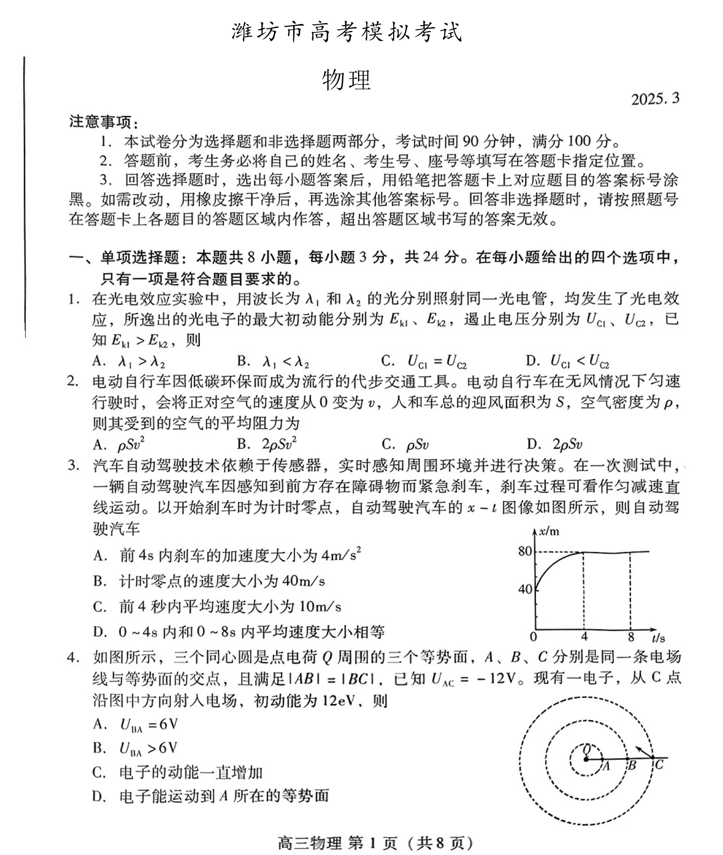 山东省2025年3月潍坊市备考模拟考试 物理
