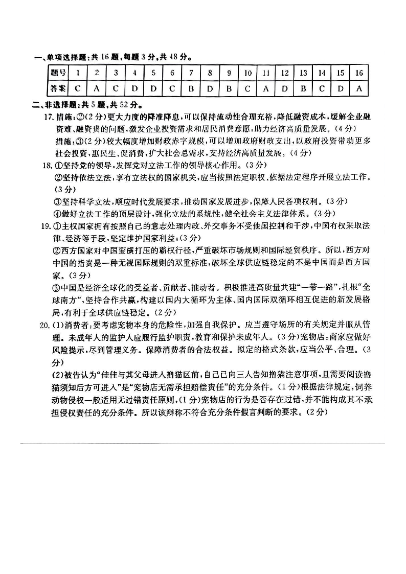 江苏省南京市、盐城市2025届高三年级第一次模拟考试 政治答案.pdf