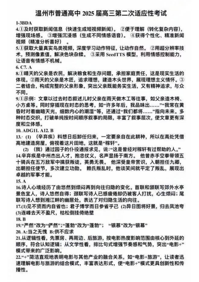 浙江省温州市2025届高三第二次适应性考试 语文答案.pdf