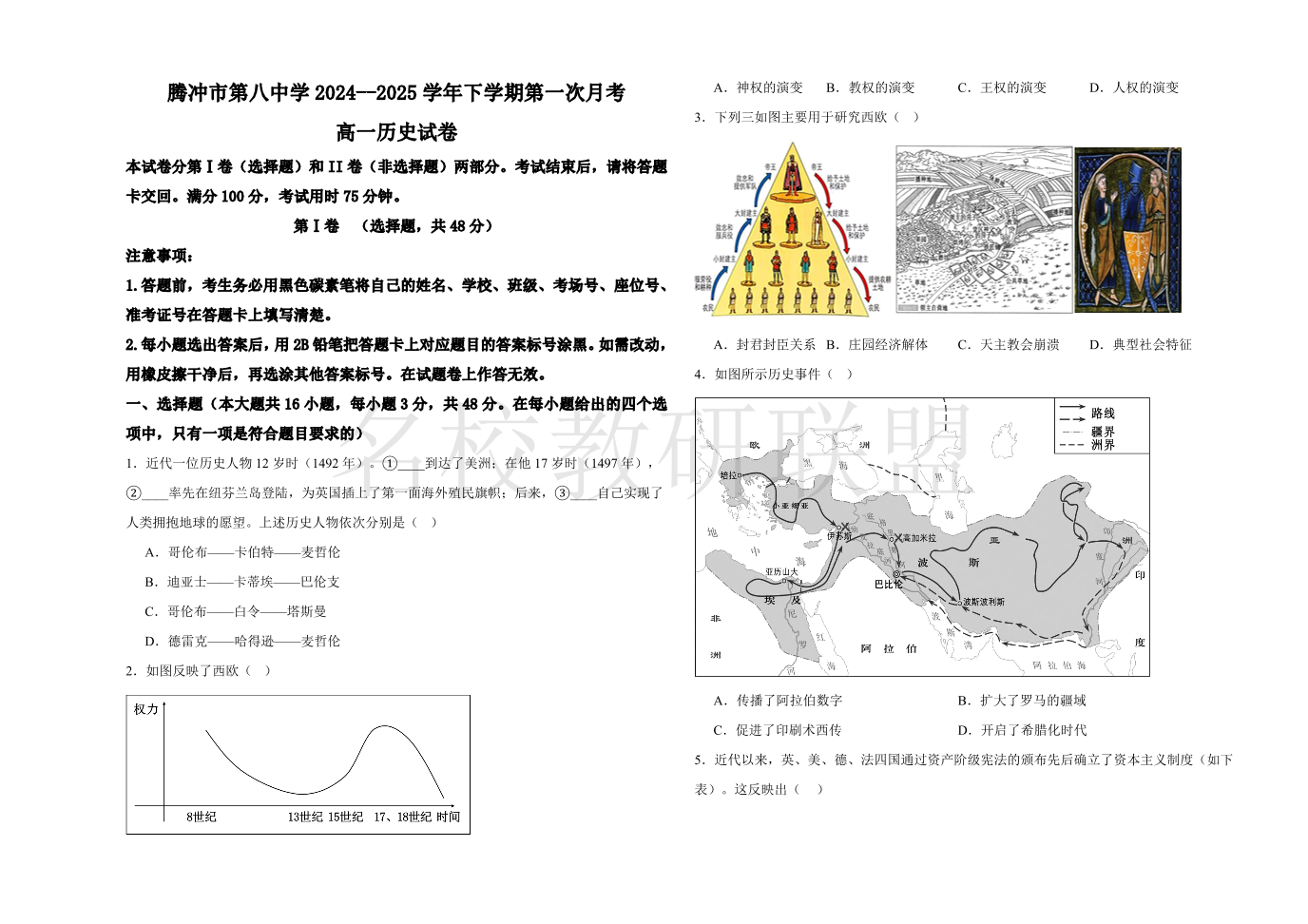 腾冲市第八中学2024-2025学年下学期高一第一次月考 历史(含答案).pdf