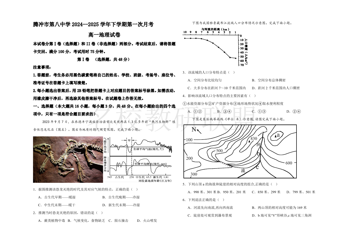 腾冲市第八中学2024-2025学年下学期高一第一次月考 地理(含答案).pdf