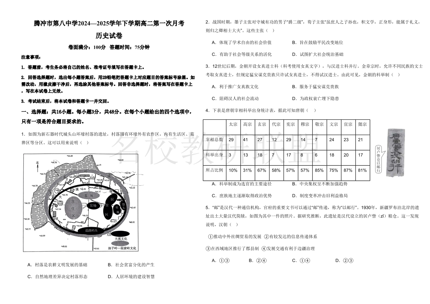 腾冲市第八中学2024-2025学年下学期高二第一次月考 历史(含答案).pdf