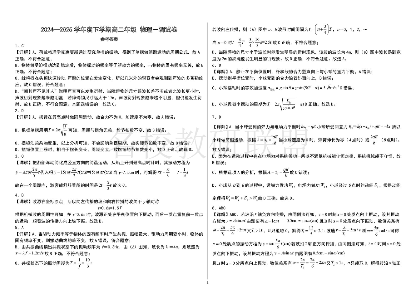 河北省衡水市第二中学2024-2025学年高二下学期第一次调研考试 物理答案.pdf