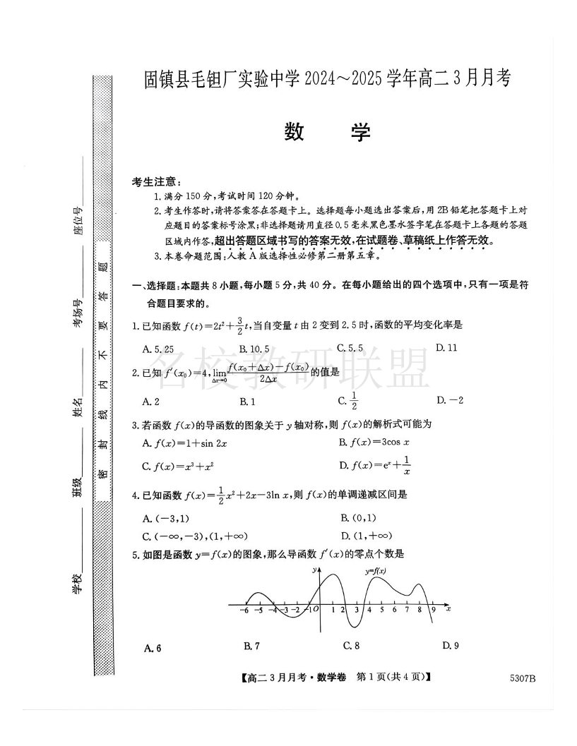 安徽省蚌埠市固镇县毛钽厂实验中学2024-2025学年高二下学期3月月考 数学.pdf