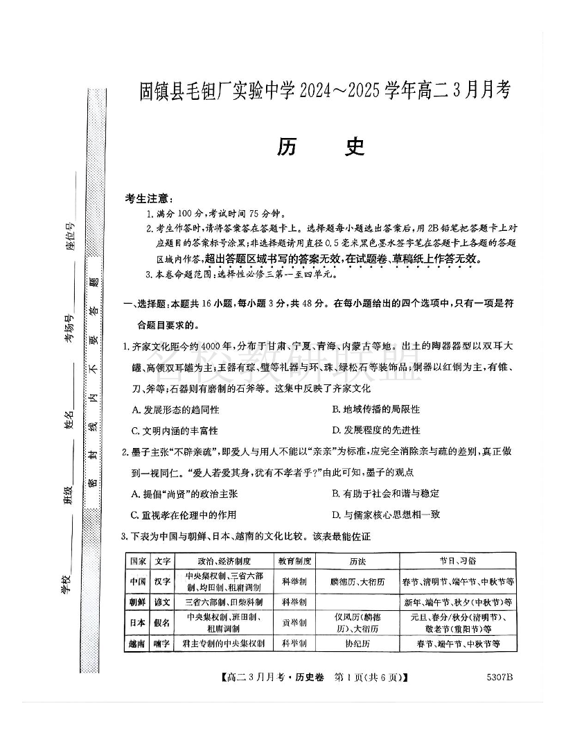 安徽省蚌埠市固镇县毛钽厂实验中学2024-2025学年高二下学期3月月考 历史.pdf
