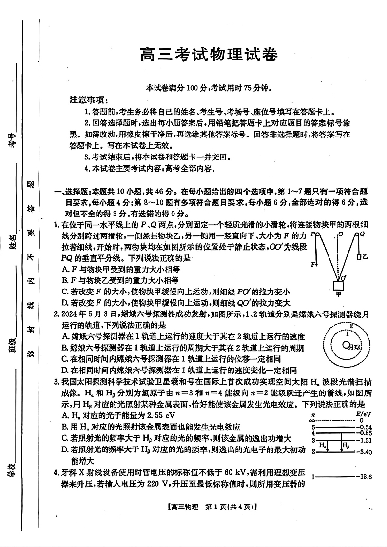 贵州省黔东南州2025届高三金太阳模拟统测 物理(含答案).pdf