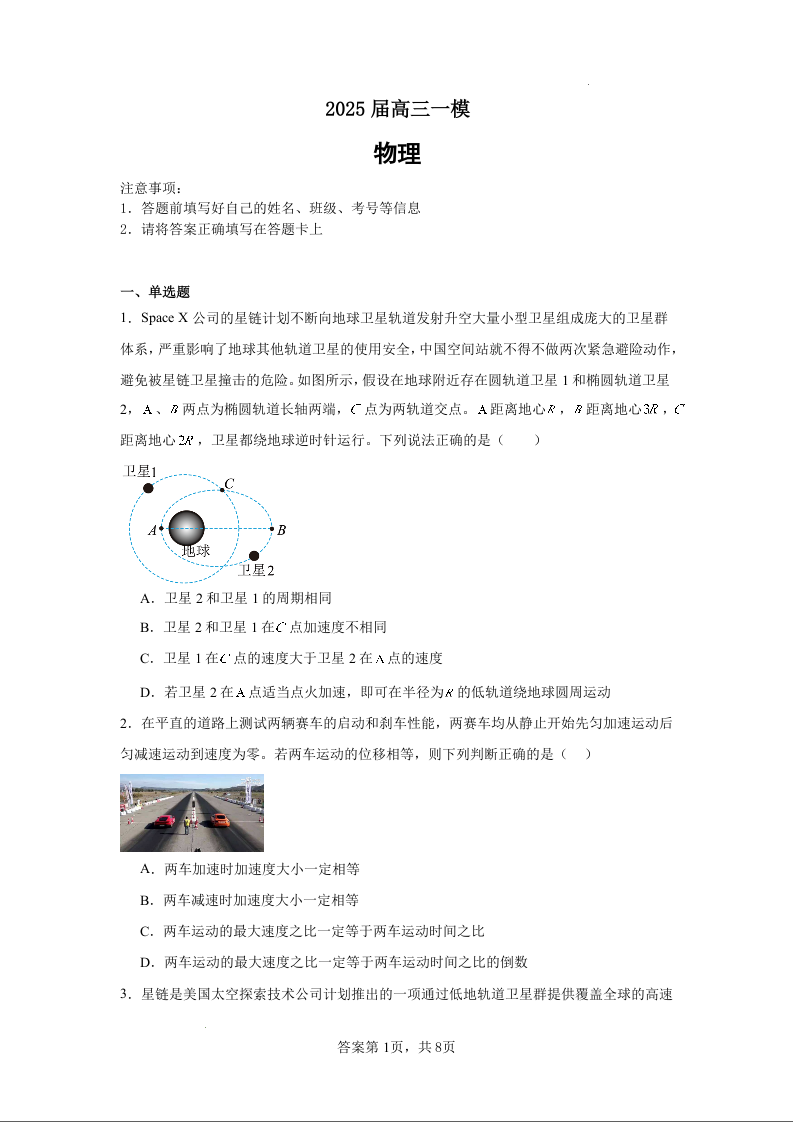 湖南省长沙市望城区第一中学2025届高三一模试题 物理.docx