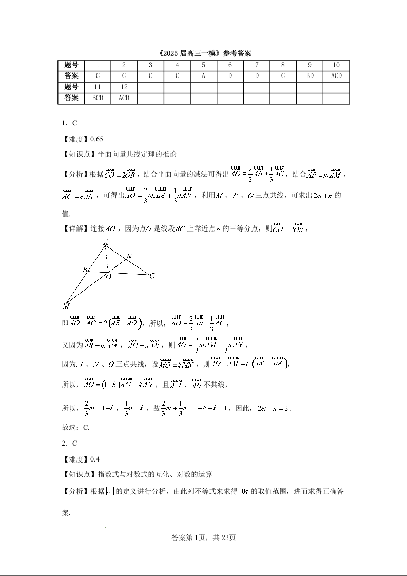 湖南省长沙市望城区第一中学2025届高三一模试题 数学答案.docx