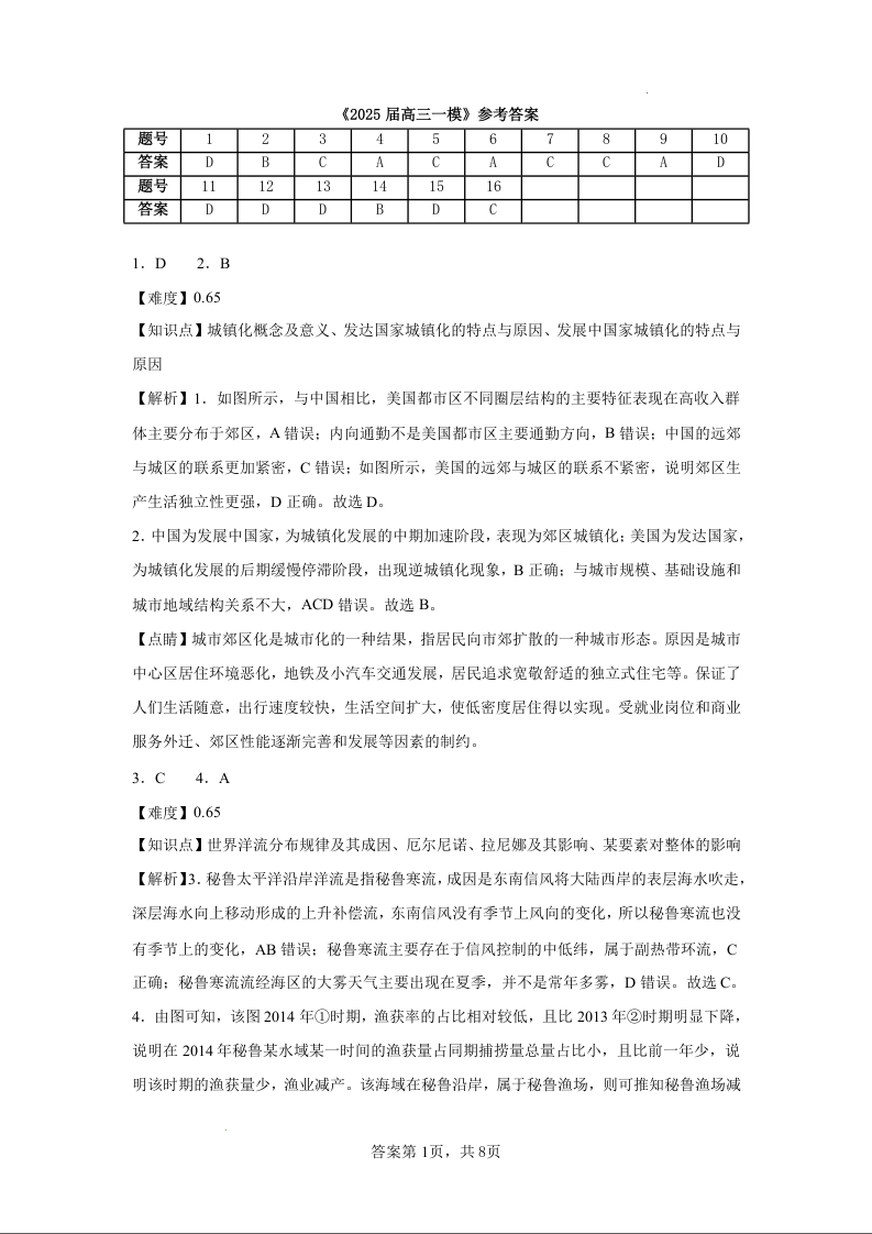 湖南省长沙市望城区第一中学2025届高三一模试题 地理答案.docx