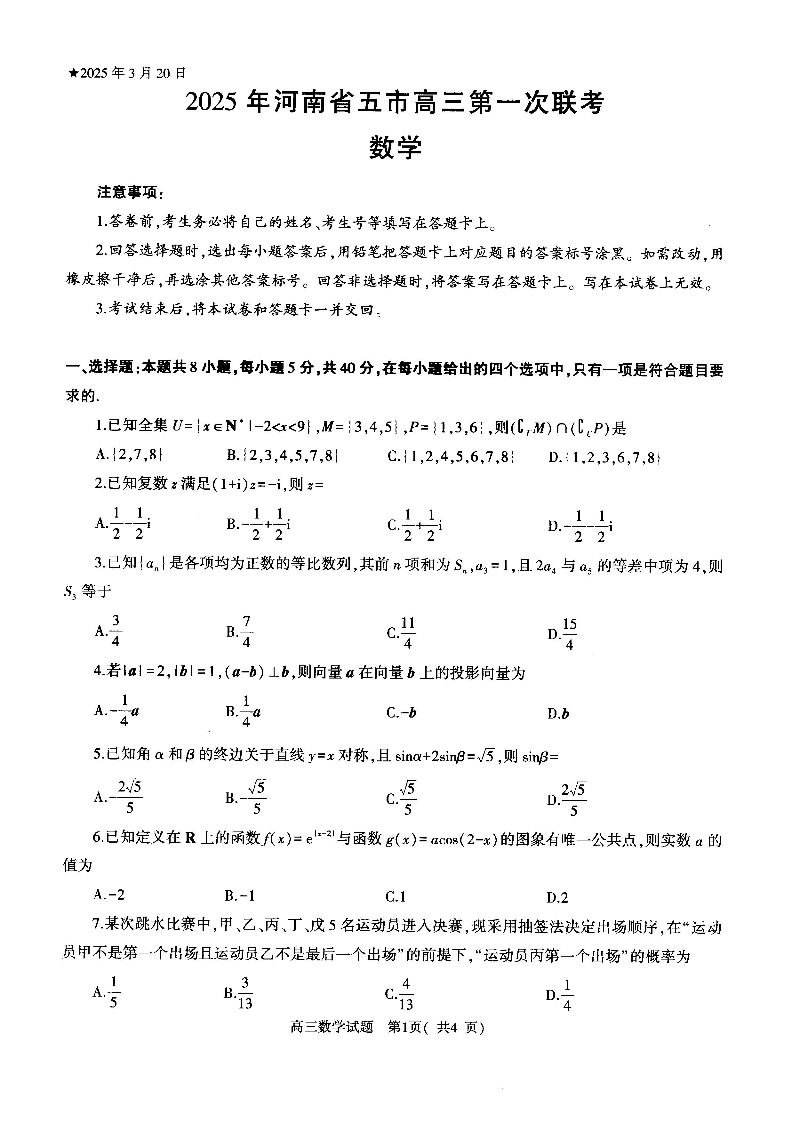河南省(驻马店、漯河、南阳、信阳、三门峡)五市2025年高三第一次联考 数学.pdf