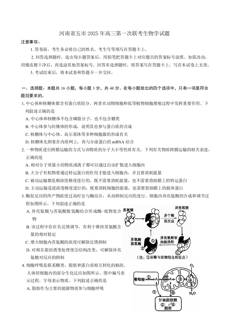 河南省(驻马店、漯河、南阳、信阳、三门峡)五市2025年高三第一次联考 生物.docx