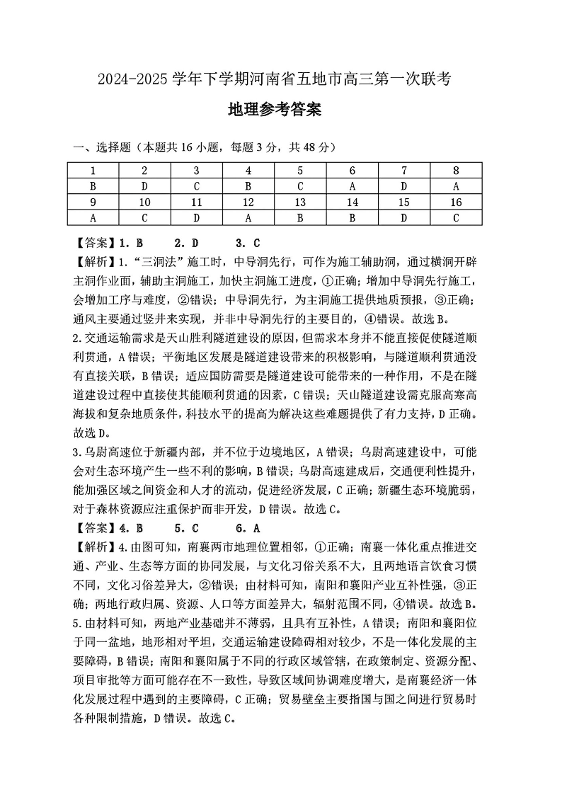 河南省(驻马店、漯河、南阳、信阳、三门峡)五市2025年高三第一次联考 地理答案.pdf