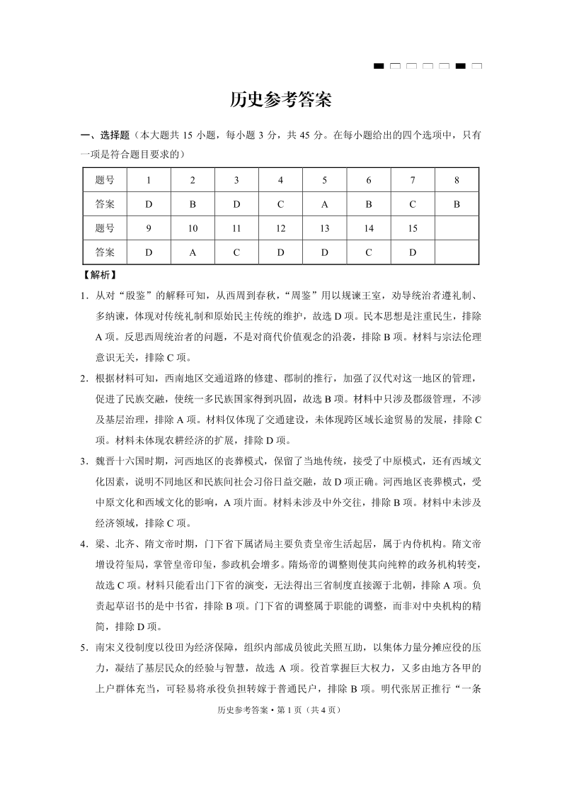 重庆市第八中学2025届高三3月适应性月考卷(六)历史答案.pdf