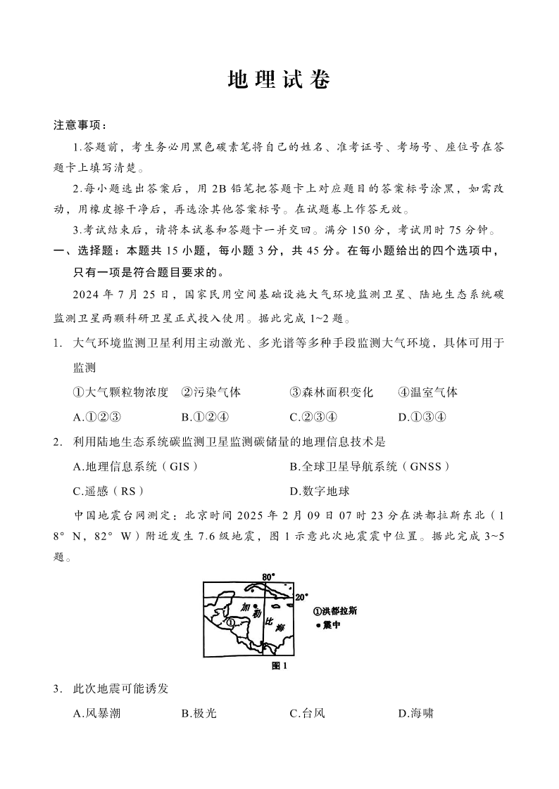 重庆市第八中学2025届高三3月适应性月考卷(六)地理.pdf