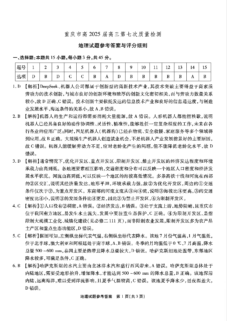 重庆市南开中学高2025届高三第七次质量检测 地理答案.pdf