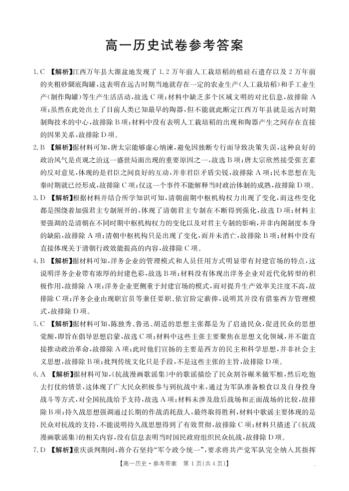 江西省2025年3月高一第五次联考 历史答案.pdf