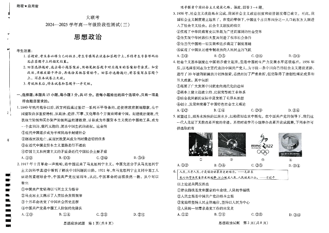 河南省创新发展联盟2024-2025学年高一下学期3月月考 政治.pdf